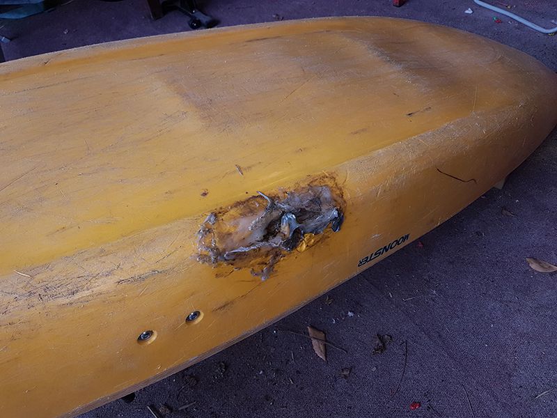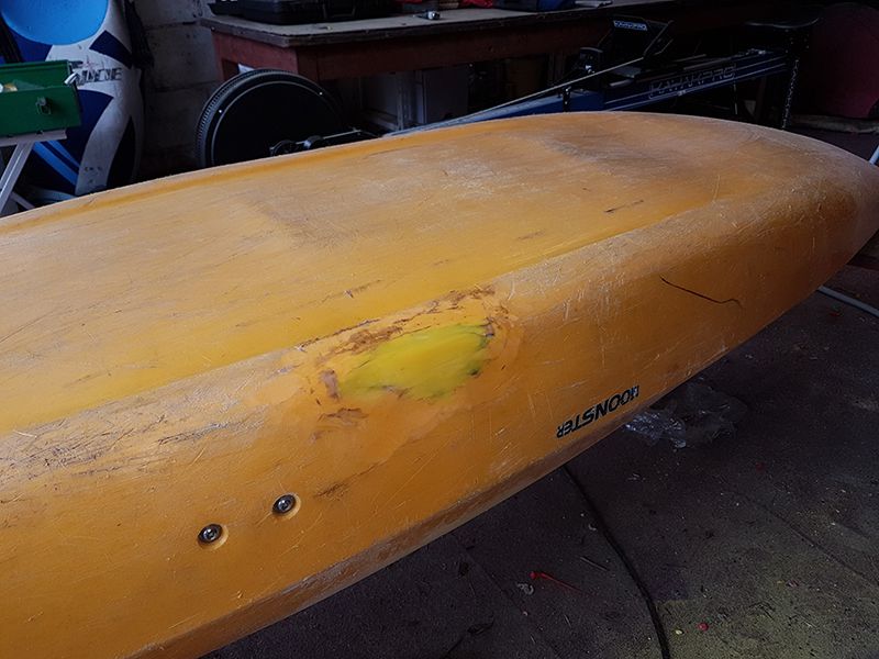 Le net peut être une mine d'or pour trouvé des solutions à nos problèmes, mais pas dans tous les cas ! En effet cette réparation a été effectué suite à un tuto. la personne a récuperer un bout de plastique et la fait fondre sur son kayak tout en chaufant celui çi, mais la problématique est que si l'on ne métrise pas les codes de chaleurs, qui sont différents du support et de lapport de la matière, cela donne ce résultat . Et donc le résultat est pire qu'au point de départ.